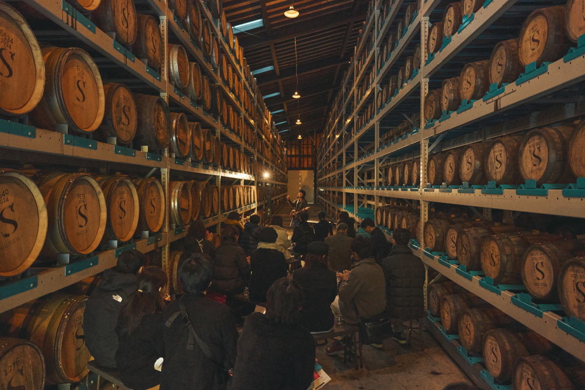 ウイスキーの香りに包まれた熟成庫で、いま眠る樽から注いだばかりの一杯を味わう。ここに来たからこそ体験できる、ひときわ特別な時間です。