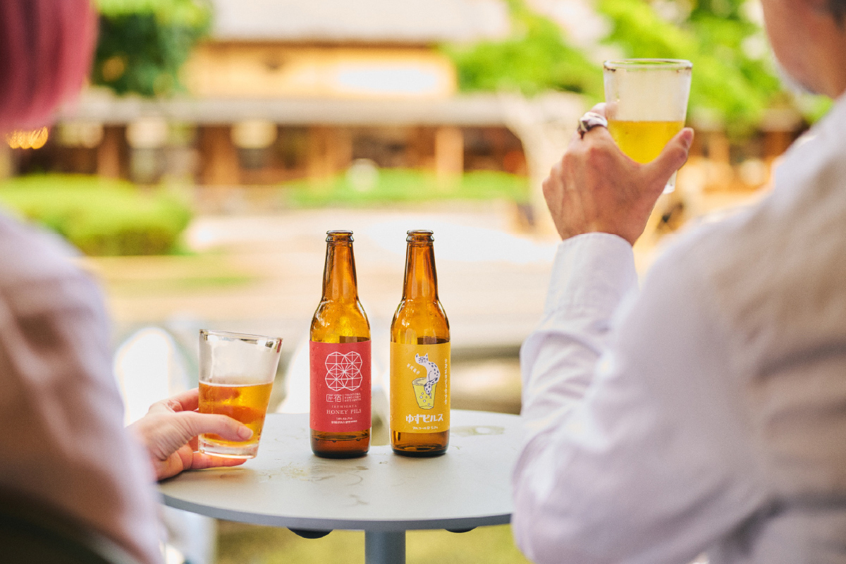 ワークショップの後は、匠宿内に佇む静岡醸造丸子工場で生まれた爽やかなクラフトビールを片手に、丸子宿の山々や庭を眺めながらゆったりとしたひとときをお楽しみください。